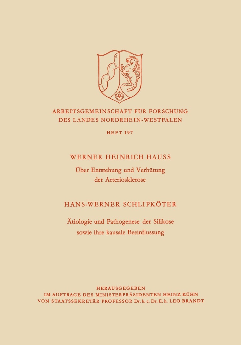 Über Entstehung und Verhütung der Arteriosklerose / Ätiologie und Pathogenese der Silikose sowie ihre kausale Beeinflussung