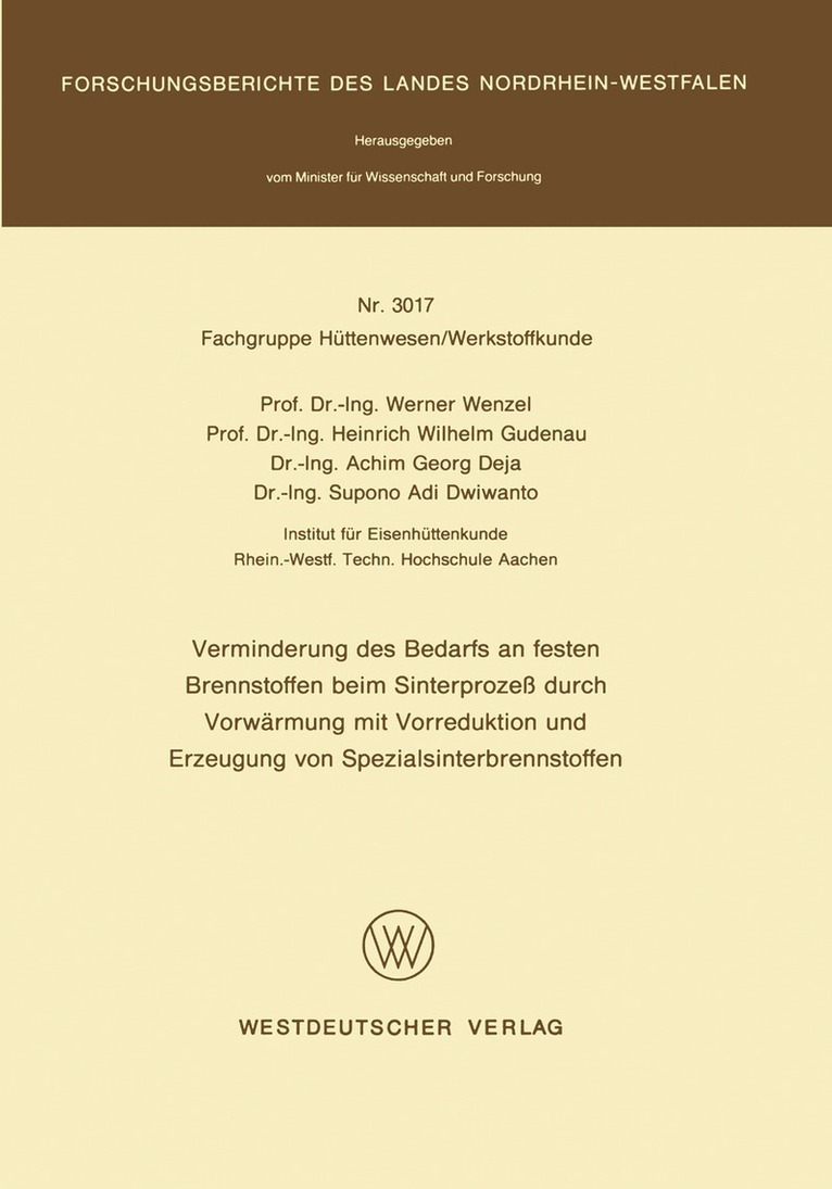 Verminderung des Bedarfs an festen Brennstoffen beim Sinterprozeß durch Vorwärmung mit Vorreduktion und Erzeugung von Spezialsinterbrennstoffen