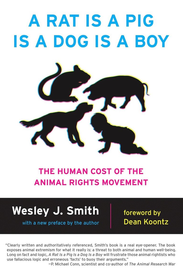 Over the past thirty years, as Wesley J. Smith details in his latest book, the concept of animal rights has been seeping into the very bone marrow of Western culture. One reason for this development is that the term "animal rights" is so often used very loosely, to mean simply being nicer to animals. But although animal rights groups do sometimes focus their activism on promoting animal welfare, the larger movement they represent is actually advancing a radical belief system. For some activists, the animal rights ideology amounts to a quasi religion, one whose central doctrine declares a moral equivalency between the value of animal lives and the value of human lives. Animal rights ideologues embrace their beliefs with a fervor that is remarkably intense and sustained, to the point that many dedicate their entire lives to "speaking for those who cannot speak for themselves." Some believe their cause to be so righteous that it entitles them to cross the line from legitimate advocacy to vandalism and harassment, or even terrorism against medical researchers, the fur and food industries, and others they accuse of abusing animals.All people who love animals and recognize their intrinsic worth can agree with Wesley J. Smith that human beings owe animals respect, kindness, and humane care. But Smith argues eloquently that our obligation to humanity matters more, and that granting "rights" to animals would inevitably diminish human dignity. In making this case with reason and passion, A Rat Is a Pig Is a Dog Is a Boy strikes a major blow against a radically antihuman dogma.