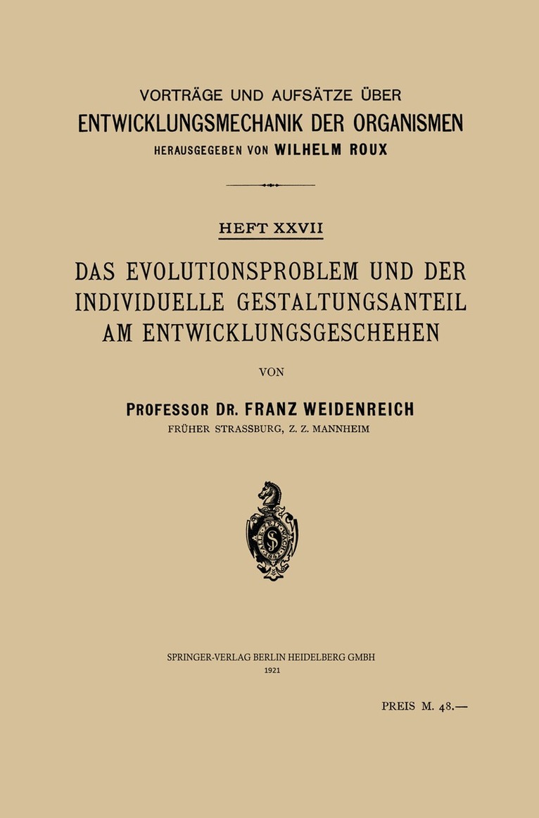 Das Evolutionsproblem und der Individuelle Gestaltungsanteil am Entwicklungsgeschehen