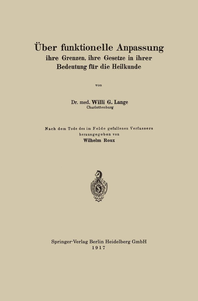 Über funktionelle Anpassung, ihre Grenzen, ihre Gesetze in ihrer Bedeutung für die Heilkunde