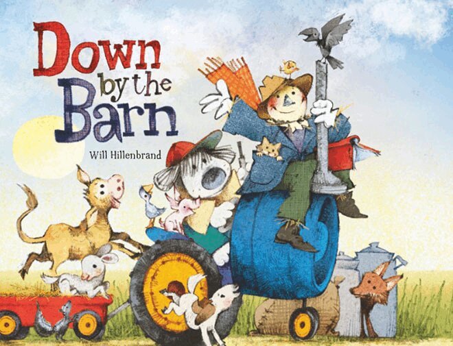 Down by the barn, early in the morning, a farmer drives his tractor, stopping along the way to pick up a calf, then a chick, then a pig. The group of animals grows and grows until at last they reach their destination…and find a surprise. Charming illustrations and rhythmic text filled with sound words make this the perfect read-aloud for young children.