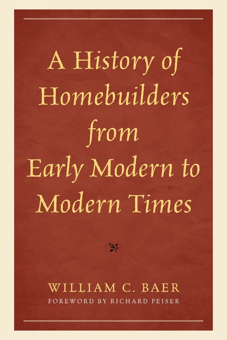 A History of Homebuilders from Early Modern to Modern Times provides a diachronic account of homebuilders’ more than 500 years history in the Anglosphere nations of the U.S., Britain, Canada, and Australia. The comparative absence of individual homebuilders’ histories in the literature, despite builders’ importance in providing our dwellings and over 70% of our entire urban built environments, is surprising. Part One introduces homebuilders from several perspectives. These are useful for evaluating the homebuilders’ whose histories are presented in Part Two, and in providing a balanced understanding of homebuilders and the societal value of what they do. The actual, albeit brief, histories of mainly large homebuilders for more than 500 years in Part II, supply historians with some particulars of homebuilder attitudes, practices, ingenuity, and resourcefulness in how they operated over the centuries, with a modest trending to community building rather than just housebuilding. Part Three specifically focuses on the following evolutionary changes in homebuilding practices: 1) increasing standardization of dwelling components, 2) increasingly institutionalized sources of financial assistance, and 3) changes in production scale. Three technical appendices on dates of homebuilder ‘firsts’ in practices; in conceptualizing housing markets; and some government regulations, follow, with a fourth appendix on homebuilders’ organizational changes over the centuries.