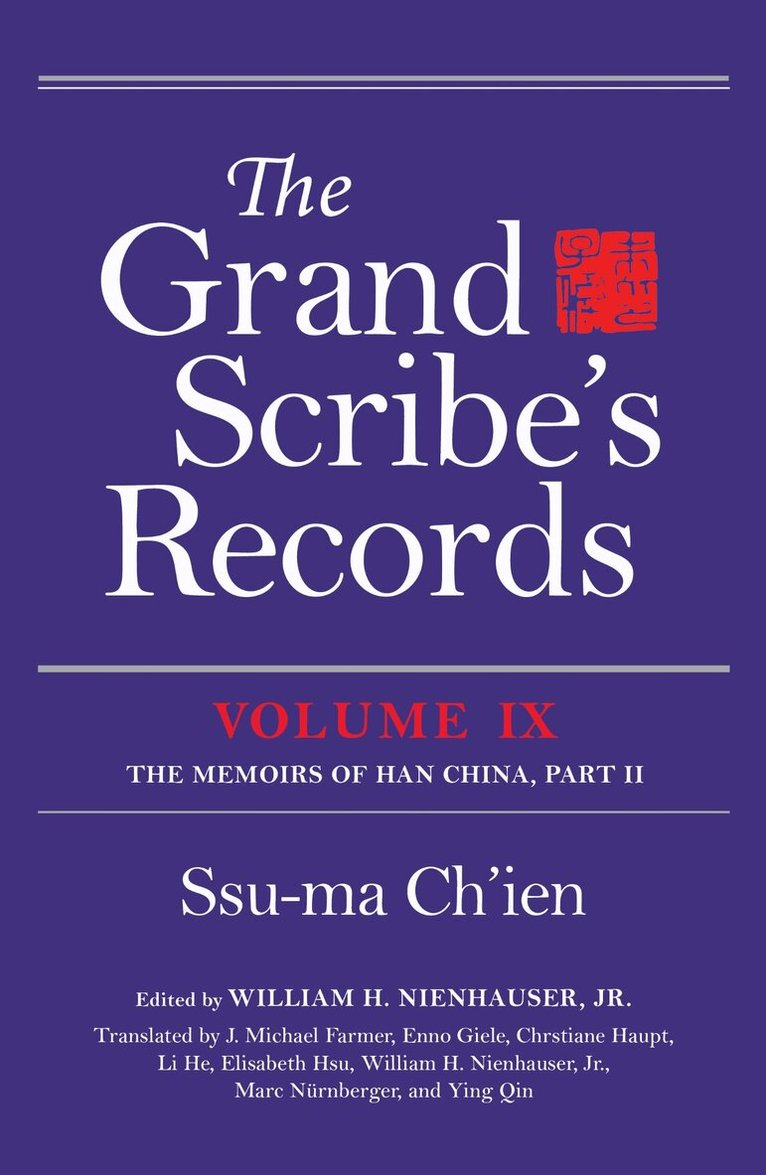 The 16 chapters translated herein continue the biographies of individuals in pre-Han China presented in volume seven of The Grand Scribe's Records. The reader is introduced to the major supporters and rivals of the founders of the Han Dynasty: the generals, advisors, strategists, and ministers who helped to shape the foundations of the first sustained empire in Chinese history. Although these men were often of common stock, they influenced the development of many aspects of the Han culture, a culture which in turn served as a model for subsequent eras. Based on oral and written accounts as well as on administrative records, these biographies range stylistically from anecdotal tales to repetitious reports of achievements in battle. The failure of the first five Han emperors to trust the loyalty of their subordinates is a leitmotif in many of these chapters. But the individual motifs that echo other sections of the Grand Scribe's Records—unrecognized heroes, both loyal and disloyal retainers, broken friendships, and faithless lovers—also appear in these pages.