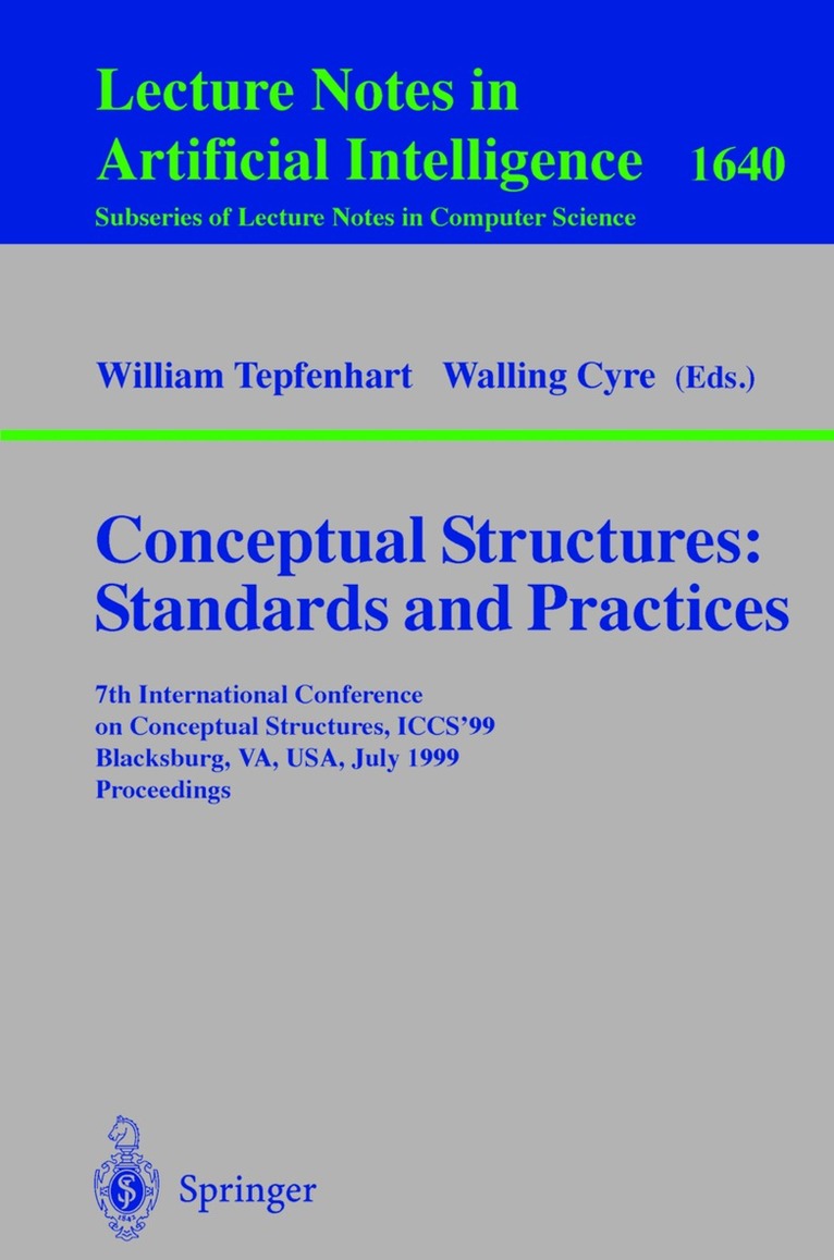 This book constitutes the refereed proceedings of the 7th International Conference on Conceptual Structures, ICCS'99, held in Blacksburg, Virginia, USA in July 1999. The 34 revised full papers presented were carefully reviewed and selected for inclusion in the book. Also included is a 65 page proposed draft standard for conceptual graphs. The papers are organized in sections on conceptual graph modeling; natural language; applications; SISYPHUS-I, contexts, logics and conceptual graphs; and position papers.