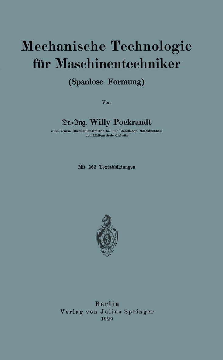 Dieser Buchtitel ist Teil des Digitalisierungsprojekts Springer Book Archives mit Publikationen, die seit den Anfängen des Verlags von 1842 erschienen sind. Der Verlag stellt mit diesem Archiv Quellen für die historische wie auch die disziplingeschichtliche Forschung zur Verfügung, die jeweils im historischen Kontext betrachtet werden müssen. Dieser Titel erschien in der Zeit vor 1945 und wird daher in seiner zeittypischen politisch-ideologischen Ausrichtung vom Verlag nicht beworben.