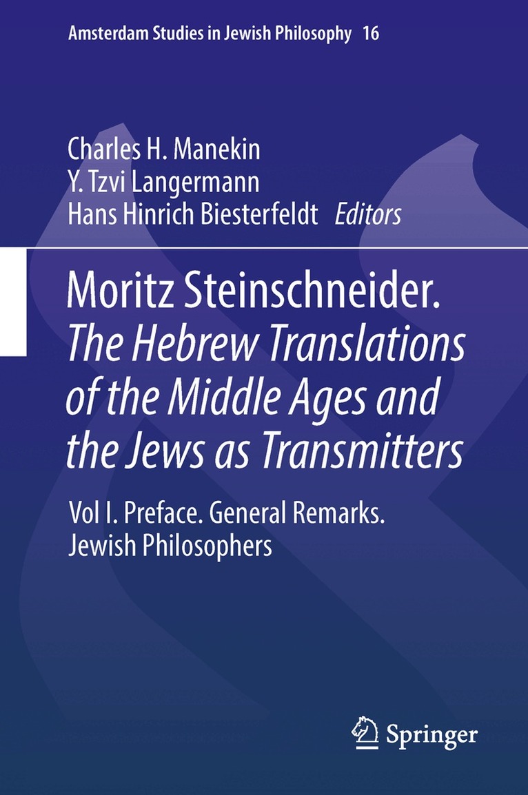 This book deals with medieval Jewish authors who wrote in Arabic, such as Moses Maimonides, Judah Halevi, and Solomon Ibn Gabirol, as well as the Hebrew translations and commentaries of Judaeo-Arabic philosophy. It brings up to date a part of Moritz Steinschneider’s monumental Die hebraeischen Uebersetzungen des Mittelalters und die Juden als Dolmetscher (The Hebrew Translations of the Middle Ages and the Jews as Transmitters), which was first published in 1893 and remains to this day the authoritative account of the transmission and development of Arabic and Latin, and, by way of those languages, Greek culture to medieval and renaissance Jews. In the work presented here, Steinschneider’s bibliography has been updated, some of his scholarly judgments have been judiciously revised and an exhaustive listing of pertinent Hebrew manuscripts and their whereabouts has been provided. The volume opens with a long essay that describes the origin and genesis of Die Hebraeischen Übersetzungen, and with Steinschneider’s prefaces to the French and German versions of his work. This publication is the first in a projected series that translates, updates and, where necessary, revises parts of Steinschneider’s bio-bibliographical classic. Historians of medieval culture and philosophy, and also scholars of the transmission of classical culture to Muslims, Christians, and Jews, will find this volume indispensable.