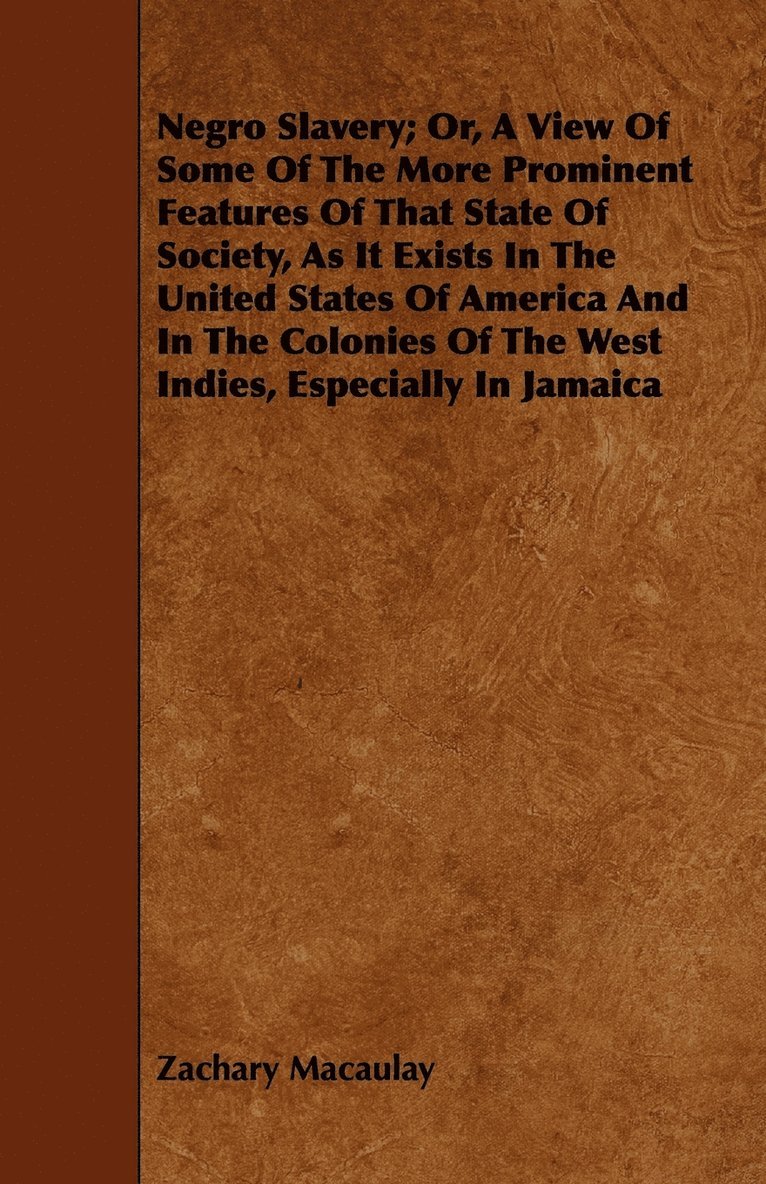 Negro Slavery; Or, A View Of Some Of The More Prominent Features Of That State Of Society, As It Exists In The United States Of America And In The Colonies Of The West Indies, Especially In Jamaica