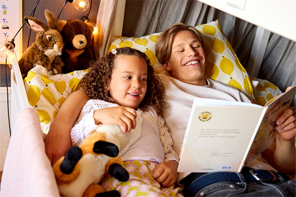 Fortsätt att läsa högt för ditt barn, även om barnet redan läser själv eller precis har knäckt läskoden - det finns det många fördelar med att fortsätta. Exempelvis är det är ett sätt att varva ned, ha mysigt tillsammans och komma till ro på kvällen, och att barnet får upptäcka mer komplicerade berättelser via högläsningen än de enkla böcker som barnet själv läser.