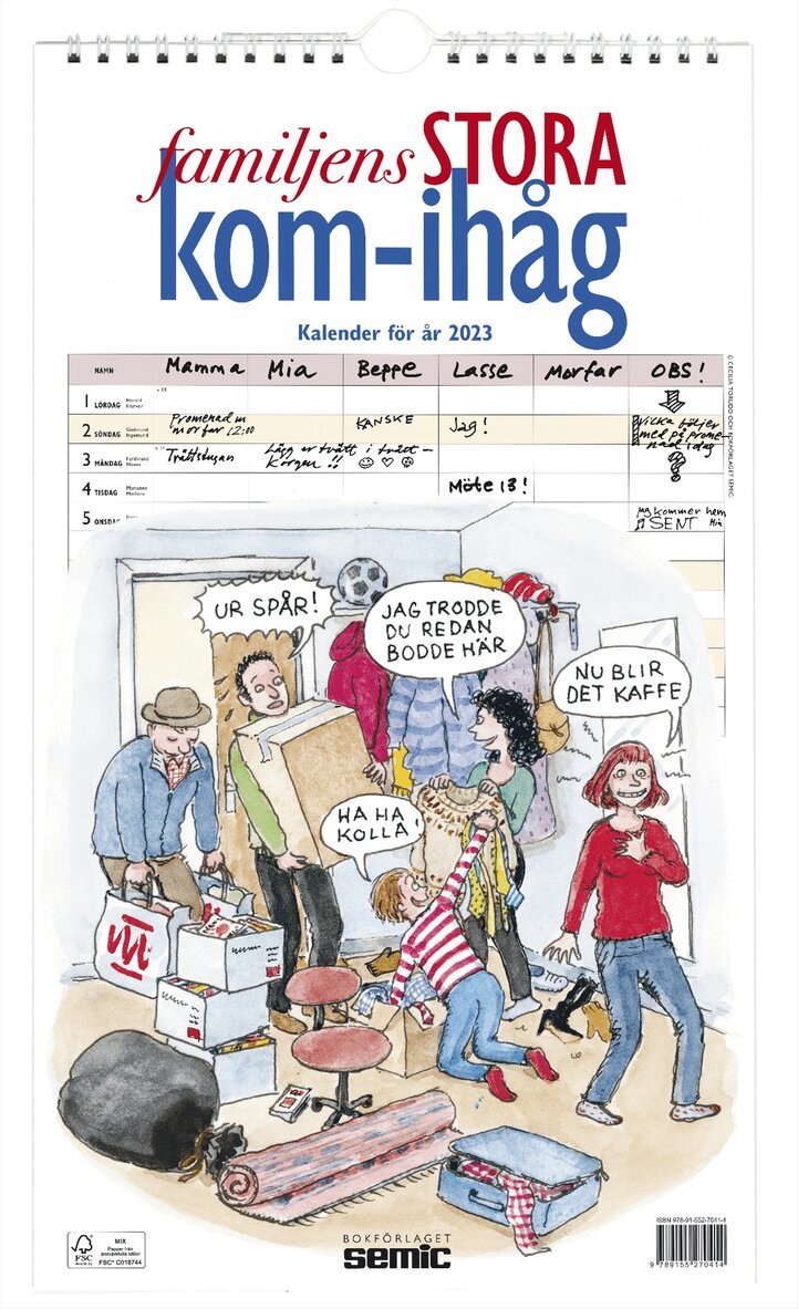En oumbärlig väggkalender i extra stort format för att organisera hela familjen! Alla månadsblad pryds av Cecilia Torudds träffsäkra Ensamma mamman-illustrationer och har en kolumn för varje familjemedlem. Skriv in allt ni behöver komma ihåg, från tandläkartider och födelsedagar till träningar och möten.