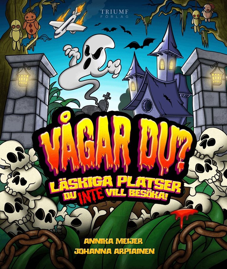 LÄSKIGA platser du INTE vill besöka! Det finns massor av underbara paradisstränder, coola städer och grymma skidbackar som man bara längtar efter att få uppleva. Och så finns det platser som man ABSOLUT INTE SKA ÅKA TILL! Om man inte vill ha mardrömmar, alltså VÅGAR DU? är en helt ny lätta fakta-serie för orädda läsare som inte backar för det äckliga, läskiga, skrämmande eller rent av livsfarliga som finns omkring oss. Med stort mod och en rejäl portion humor får du (på säkert avstånd) besöka ön full av trasiga dockor, väldens mest hemsökta slott, vindlande gravgångar och kyrkor byggda av människoben. Annika Meijer har skrivit och översatt flera faktaböcker för barn och Johanna Arpiainen är känd för sina fartfyllda, knasiga illustrationer. Tillsammans guidar de läsaren till platser så obehagliga att man knappt tror att de finns på riktigt.