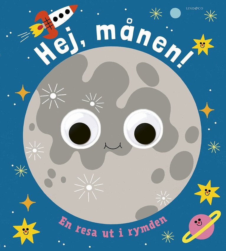Säg hej till månen och lär dig en massa spännande fakta! Roliga "googly eyes" gör läsningen extra kul.