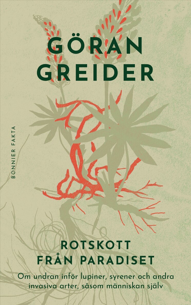 Vad händer när skönheten blir ett hot? När lupiner, syrener och jättebalsaminer inte längre bara är älskade trädgårdsväxter utan symboler för artdöd, kolonialism och människans sätt att forma naturen? I "Rotskott från paradiset" följer Göran Greider spåren av våra mest omstridda växter – från istidens tundra och imperiernas växtjägare till dagens vägkanter, trädgårdar och heta debatter. Utgångspunkten är hans egen trädgård i Dala-Floda, där kampen mot och förundran inför de invasiva växterna växer fram dag för dag. I essäns fria form rör sig Greider mellan kulturhistoria, biologi och sina egna erfarenheter av att gräva, plantera och ibland förtvivla. Resultatet är en lärd, personlig och poetisk bok som visar varför några av våra vackraste blommor också är de mest kontroversiella. En bok för alla som älskar trädgårdar, växter och berättelser – och som vill förstå naturens och kulturens täta sammanflätning.