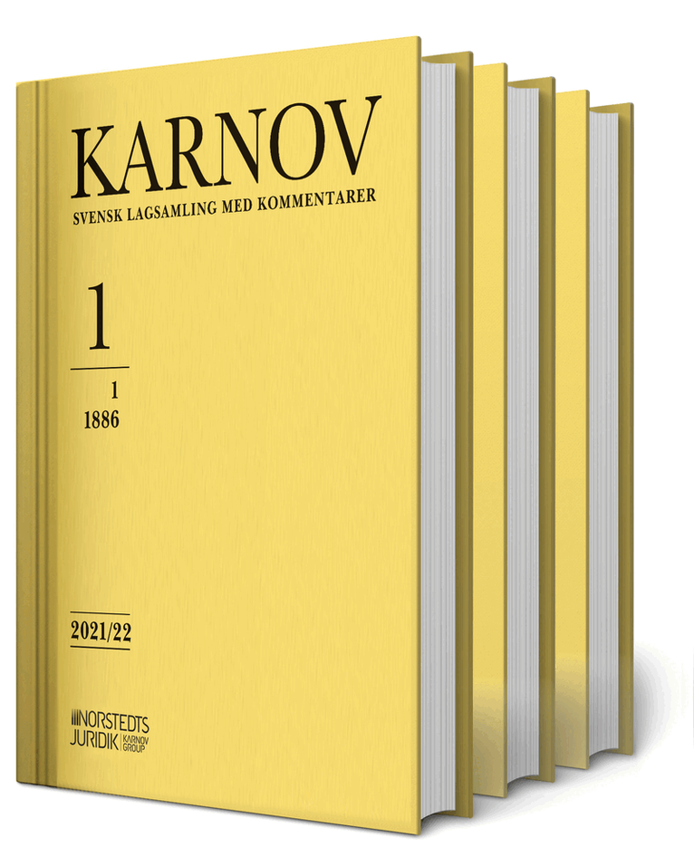 Karnov bokverk 2021/22 är ett stort juridiskt uppslagsverk i vilket lagar och andra författningar kommenteras. Verket gör det möjligt att snabbt finna lösningen på juridiska frågor och problem. Kravet på effektivitet i arbetet hos domstolar och myndigheter, på advokatbyråer, inom näringslivet och i organisationsväsendet har ständigt ökat under de senaste decennierna. Karnov är avsett att täcka behovet av ett hjälpmedel som ger svar på vanliga tolknings- och tillämpningsfrågor. Är problemet av mera komplicerat slag ger Karnov upplysning om förarbeten, rättsfall, lagkommentarer eller vetenskapliga verk som bör konsulteras för vidare studier.