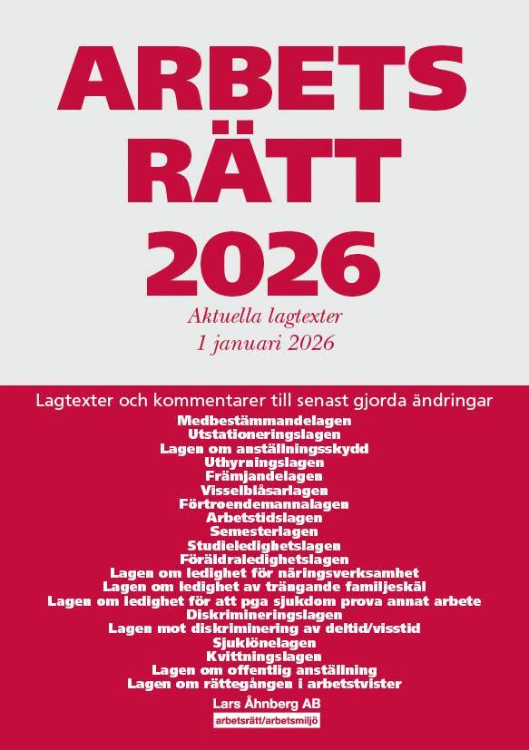 Arbetsrätt 2026 - 1 januari, innehåller hela lagtexten i de arbetsrättslagar som ingår i lagsamlingen och kommenterar senast gjorda ändringar i dessa lagar.