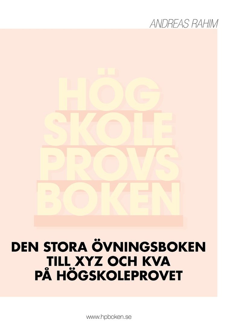 I över tio år har Andreas Rahim, en av landets främsta experter på hur man löser uppgifter på högskoleprovet, skrivit böcker om hur man lyckas på provet. “Högskoleprovsboken: Den stora övningsboken till XYZ och KVA på högskoleprovet” skapades för att hjälpa dig att maximera din poäng på just de här delarna. I den här boken hittar du 500 noga genomtänkta övningsuppgifter (med detaljerade lösningar och förklaringar) till XYZ och KVA på högskoleprovet. Efter att ha gått genom alla tidigare XYZ och KVA som publicerats de senaste 10 åren har författaren konstruerat 500 övningsuppgifter som påminner om uppgifterna från dessa delar. Genom att räkna genom uppgifterna i den här boken, och uppgifterna från tidigare XYZ och KVA, kommer du att vara väl förtrogen med de olika typer av uppgifter som hittills har kommit på XYZ och KVA och mycket väl förberedd inför dessa delar på högskoleprovet. Till alla uppgifter i den här boken finns givetvis facit med utförliga och pedagogiska lösningar. Förutom att själv skriva 2,0 på högskoleprovet och, tillsammans med Robert Renneson ligga bakom sajten hpvideo.se med videogenomgångar av högskoleprovet, har han intervjuats av bland andra TV och tidningen Metro, varit provledare på högskoleprovet under flera år och skrivit ett dussintal böcker om högskoleprovet som sålts i tusentals exemplar sedan starten 2011. Han har även skrivit en bok om hur man maximerar sina betyg på gymnasiet. Rivstarta ditt högskoleprovsplugg och maximera ditt resultat på högskoleprovet med den här boken!