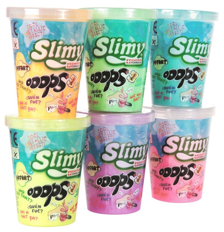 Slajmet finns i sex härliga färger: gul, rosa, lila, orange, grön och turkos.