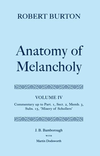 Robert Burton: The Anatomy of Melancholy: Volume IV: Commentary up to Part 1, Section 2, Member 3, Subsection 15, 'Misery of Schollers'