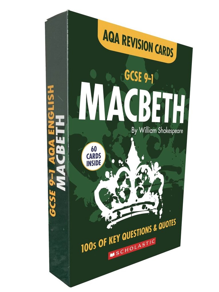 GCSE Grades 9-1 Revision Cards, perfect to support yourrevision for the closed book AQA GCSE English Literature exam.This set of revision cards covering An Inspector Callsby J. B. Priestley, is perfect for last-minute revision Clear information with at-a-glance chronology of the text.Tight focus on key events, characters, themes, context, languageand structure.Lots of quiz cards to help you demonstrate your knowledge andunderstanding you can't go wrong! These cards can be used alongside Scholastic's Study Guides orthey can be used independently as a stand-alone revision resource. Even More Support for Your GCSEsScholastic also offers a full range of revision tools to helpyou prepare for your examinations, including: Study guides,Essay planners, andSet Texts (including annotation-friendly and pre-annotated editions) Everything you need for confident, organised and successful GCSErevision.Using our 'active' approach to revision along with lots of tipsand tricks helps the knowledge (and those tricky quotations!) sinkin. These world class revision techniques include: Snap it! Read it, snap it on your phone, revise it...helpsyou retain key factsNail it! Authoritative essential tips and guidance tohelp you understand what's required in the AQA examDo it! Short activities to consolidate your knowledgeand understanding of the textStretch it! Support for the really tough stuff that willget you higher gradesDefine it! Definitions of unfamiliar language in the textand important subject terminology