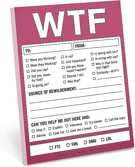 Keep it real (and roomy) with these extra big, extra mouthy stickies. They say what's really on your mind, while leaving you plenty of room to jot lists, notes-to-self, and "Let's go . . . take a nap!" FYIs. Express your mood with cute sticky notes-the catharsis is real!These funny babies are a whole inch bigger than regular old post it notes, yay!4 x 4 inches, 100 sheets