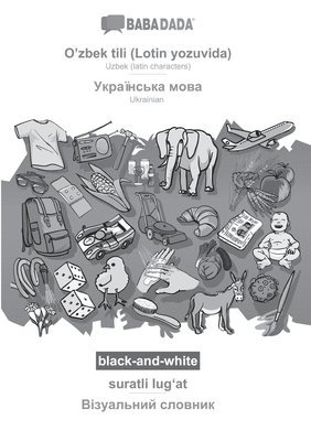 BABADADA Ukrainian (in cyrillic script) - Uzbek (latin characters), visual dictionary, BW