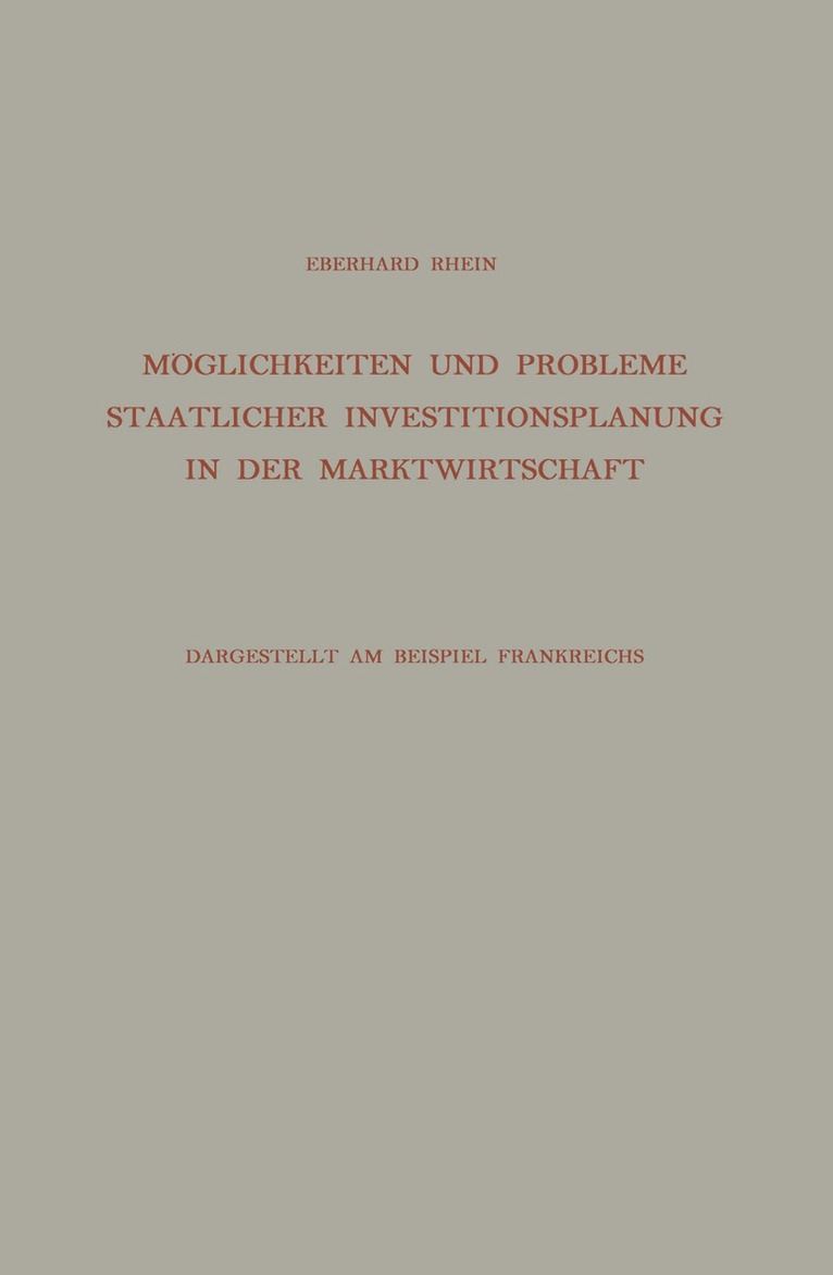 Möglichkeiten und Probleme Staatlicher Investitionsplanung in der Marktwirtschaft