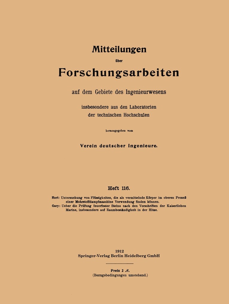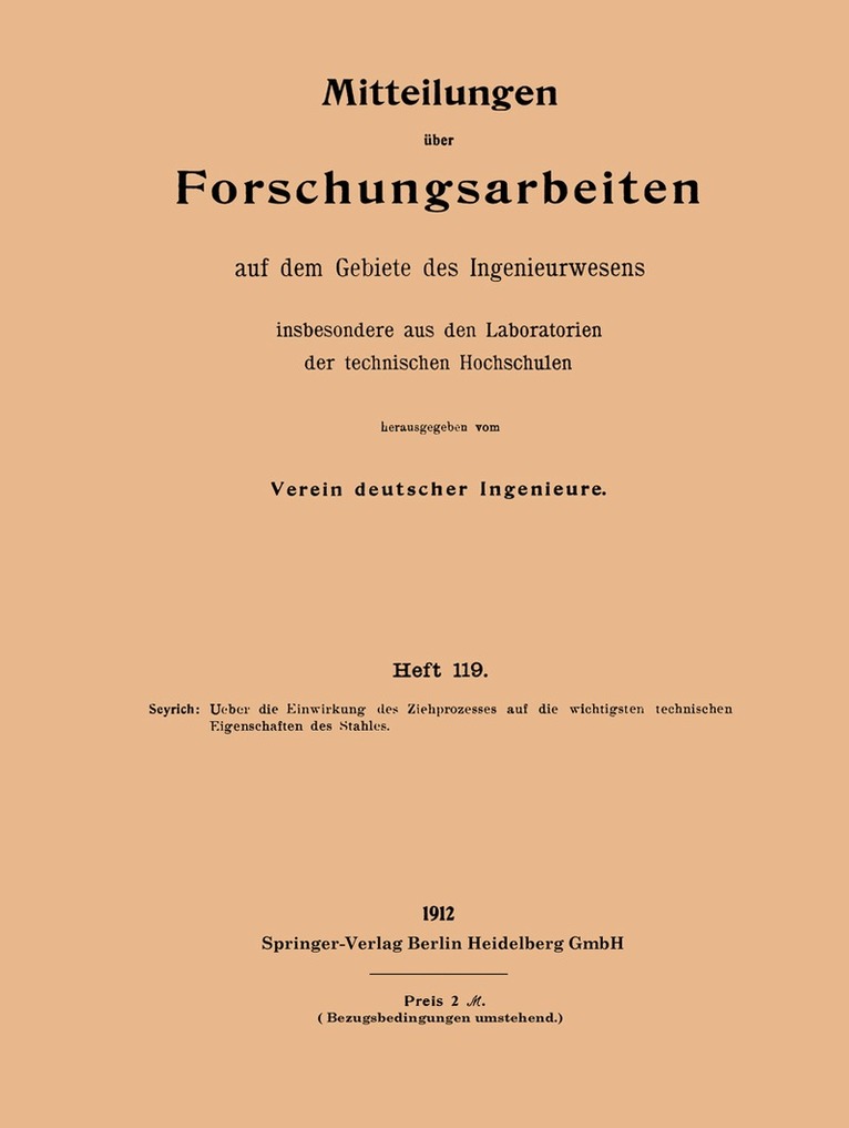 Mitteilungen über Forschungsarbeiten auf dem Gebiete des Ingenieurwesens insbesondere aus den Laboratorien der technischen Hochschulen