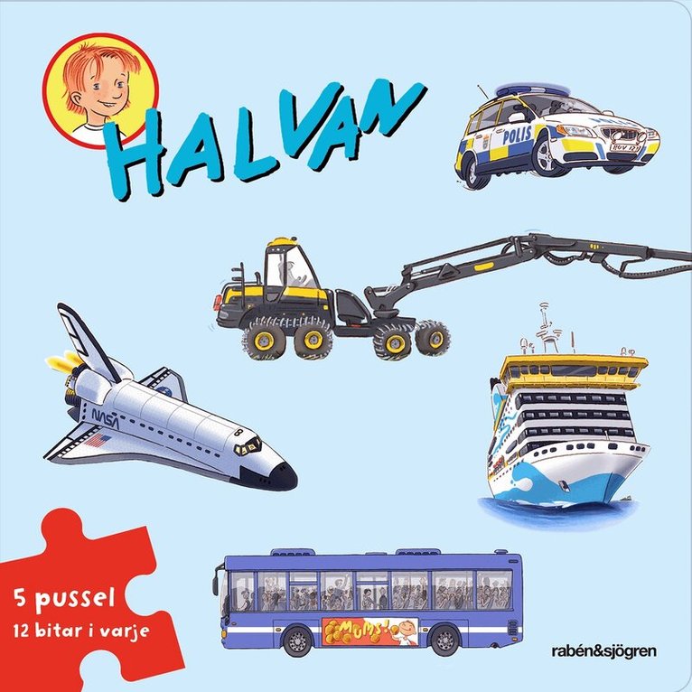 Läs och pussla ihop bilder i en bok med Halvan!Här finns 5 olika pusselmotiv med 12 bitar i varje pussel. Korta berättelser att läsa tillsammans samtidigt som ni pusslar ihop fordonsmotiven. Ett roligt format med både bok och pussel i ett som skapar en mer lekfull lässtund.