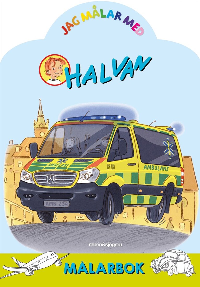 En formskuren målarbok med fordonskunnige Halvan. Roliga motiv att färglägga baserade på den älskade bilderbokserien om Halvan och alla de fordon som han får köra. Passar för alla åldrar.