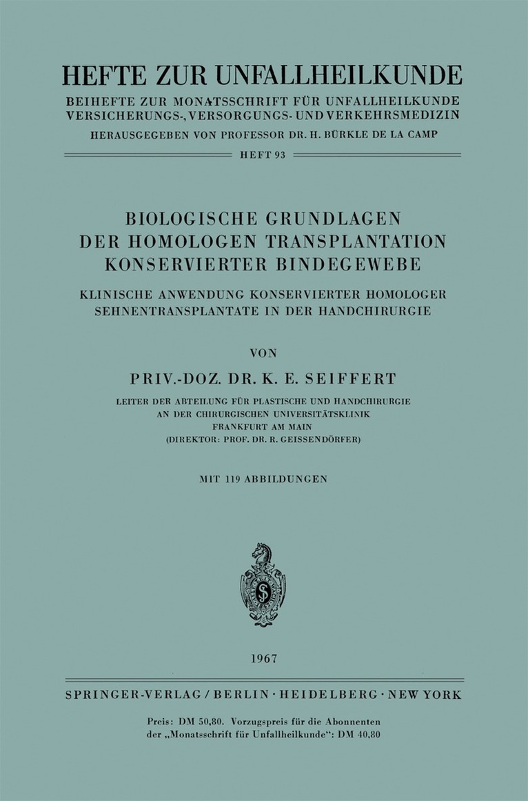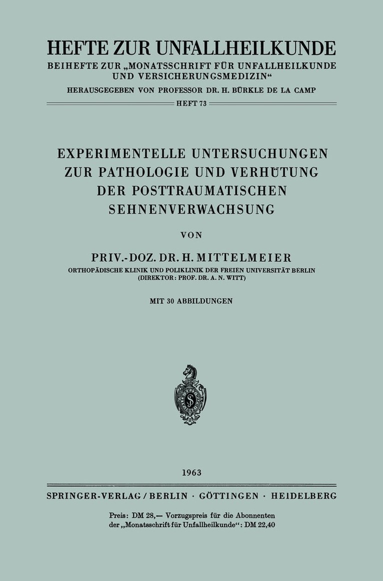 Experimentelle Untersuchungen zur Pathologie und Verhütung der Posttraumatischen Sehnenverwachsung