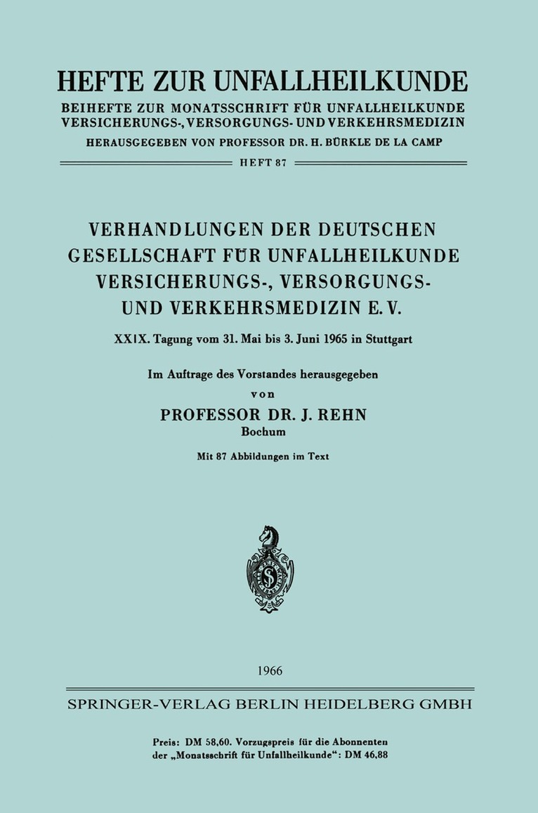 Verhandlungen der Deutschen Gesellschaft für Unfallheilkunde Versicherungs-, Versorgungs- und Verkehrsmedizin