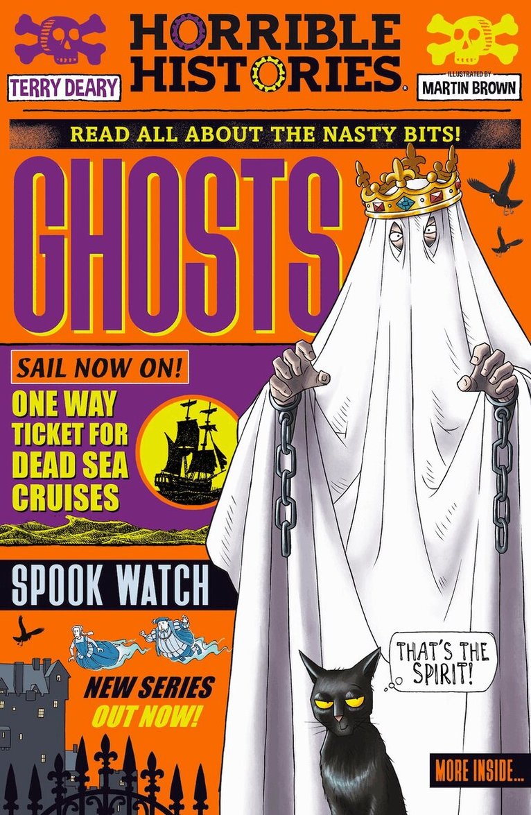 Boo! Discover all the frightful stories behind iconicghost tales and legends from around the world with history's mosthorrible headlines: the ghost and ghouls edition. The master of making history fun, Terry Deary, turns his attentionto spooks and spirits.From the ancient evils of Egypt, cutthroat Celticsacrifices, Anne Boleyn andother restless royals, a deathly drummerboy trapped in the underground passages of Edinburgh,as well as ghost busters and spook rumblers,combined with tons of Horrible Halloween factsand top tips for getting rid of ghouls, it's all inHorrible Histories: Ghosts: Fully illustrated throughout and packed with hair-raisingstories - with all the horribly hilarious bits includedWith a fresh take on the classic Horrible Historiesstyle, perfect for fans old and newThe perfect series for anyone looking for a fun and informativereadHorrible Histories has been entertaining childrenand families for generations with books, TV, stage show, magazines,games and 2019's brilliantly funny HorribleHistories: the Movie - Rotten Romans. Get your history right here and collect the whole horrible lot.Read all about it!