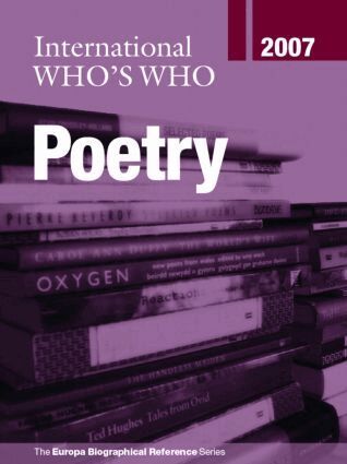 ontaining biographies of prominent poets worldwide, the 24th edition of the INTERNATIONAL WHO’S WHO IN POETRY is a unique and comprehensive guide to the leading lights and the freshest talent in poetry today. With nearly 4,000 entries, as well as working as a biographical reference source this title also contains an encyclopedic directory section. • Each biographical entry includes principal career details, publications, prizes and awards, and contact information, where available • The directory section includes listings of literary organizations, poetry awards and prizes, and a list of the national poets of several countries of the world • Truly international in its coverage Meticulously researched and compiled, the INTERNATIONAL WHO’S WHO IN POETRY provides the most comprehensive collection of information available on the most important personalities in the poetry world. Complementing the INTERNATIONAL WHO’S WHO IN POETRY to cover all aspects of the literary spectrum is its companion title, the INTERNATIONAL WHO’S WHO OF AUTHORS AND WRITERS. Both resources, as well as information on deceased entrants and entrants from the wide range of other Europa biographical sources, can also be accessed online at www.worldwhoswho.com.