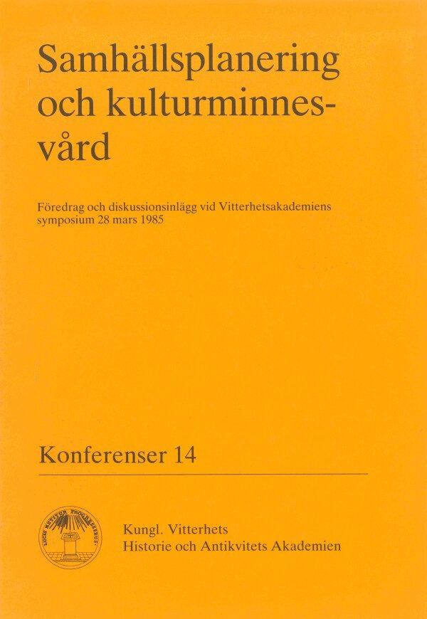 Samhällsplanering och kulturminnesvård : Föredrag och diskussionsinlägg vid Vitterhetsakademiens symposium 28 mars 1985