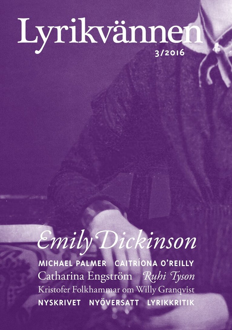 Poeter tänder lampor, skriver Emily Dickinson i en dikt omkring 1865. Om vekarna tar ordentlig fyr kan de bli bestående som solar. I så fall är Dickinson diktvärld i sig själv en hel galaxhop. I detta nummer har vi samlat några av dem som dras som insekter till hennes ljus. Björn Kohlström cirklar kring farligheten i hennes poesi, medan Josefin Holmström undersöker Mästarbreven, tre mytomspunna brevutkast till en okänd mottagare som vi också publicerar i sin helhet.