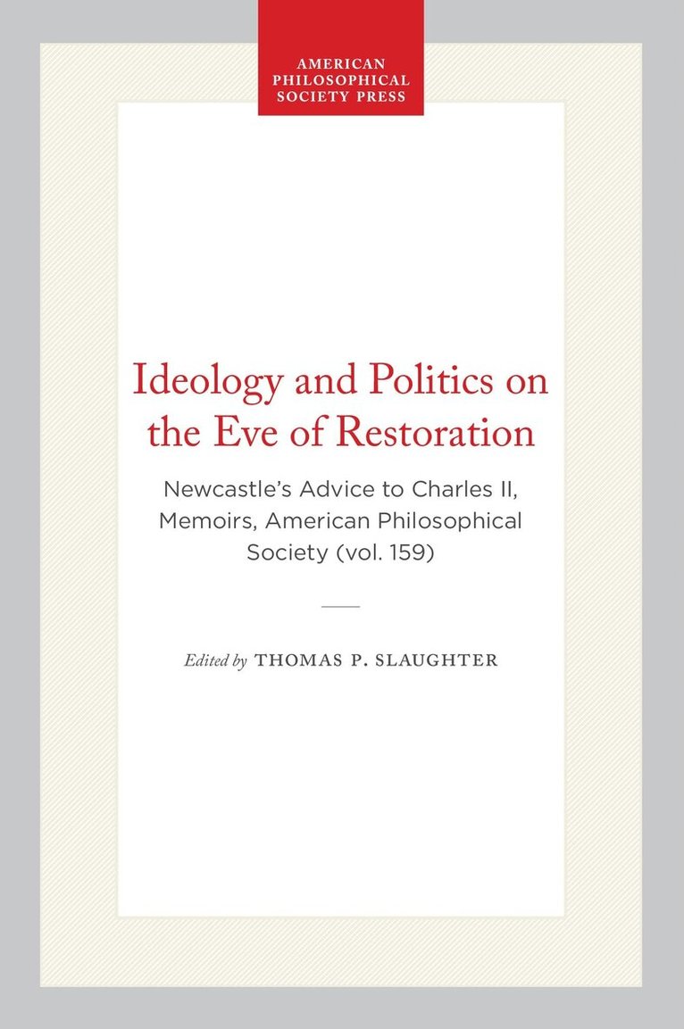 Newcastle's Advice to Charles II, Memoirs, American Philosophical Society (vol. 159)