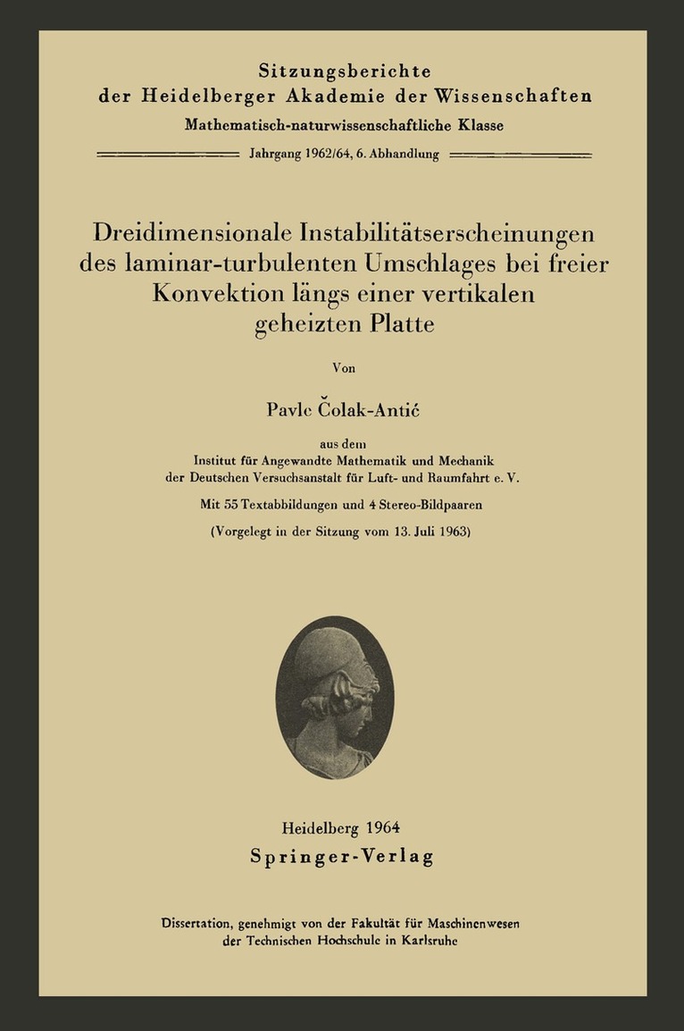 Dreidimensionale Instabilitätserscheinungen des laminar-turbulenten Umschlages bei freier Konvektion längs einer vertikalen geheizten Platte
