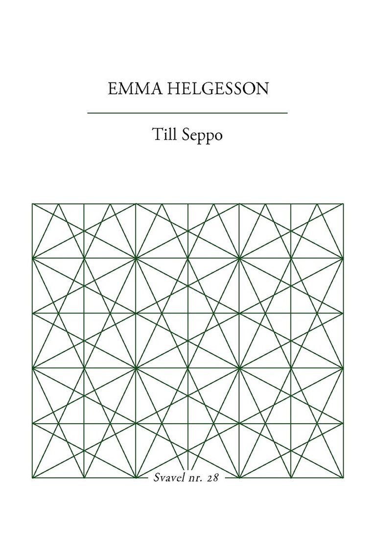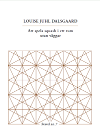 Att spela squash i ett rum utan väggar är en omöjlighet, liksom kanske även parförhållandet. Med en taktil närhet och med högsensibelt språk undersöks här den danska författaren Louise Juhl Dalsgaard (f. 1973) de paradoxala krafterna i att leva tillsammans med den man älskar. Boken, som utgör nummer 7 i Trombone förlags Svavel-serie, är en remix av fragment från Louise Juhl Dalsgaards poetiska punktroman Til sammen (Forlaget Nulpunkt, 2014). Louise Juhl Dalsgaard introduceras härmed på svenska. Under 2015 kommer hon också vara representerad i lyrikantologin Nervsystem – ung dansk poesi (ellerströms). Hon debuterade 2011 med Mit ønske om at dø er rent hypotetisk och har även ägnat sig åt visuell poesi. 2014 gjorde hon också den poetiska kortfilmen ”Om Arktiske heste”. Utöver sitt författarskap är hon kreativ administratör och undervisar i fysisk gestaltning av språk på en teaterskola i Aarhus. Urval och bearbetning: Jonas Rasmussen & Louise Juhl Dalsgaard Översättning: Jonas Rasmussen Svavel är en handgjord, småskalig och alltid sextonsidig skriftserie innehållande koncentrerad och högklassig litteratur. Böckerna i serien är häftade och i A6-format. Utgivna titlar i Svavel: 1. PETER LUCAS ERIXON Fotismer (2012) 2. MORTEN SONDERGAARD Akut sol (2013) 3. KENNETH KOCH Om estetik (2013) 4. JONAS ELLERSTRÖM Antecknat i Albion (2013) 5. DAN GUSTAVSSON Naturlyrik (2013) 6. CHRISTER BOBERG Haiku (2013) 7. LOUISE JUHL DALSGAARD Att spela squash i ett rum utan väggar (2015) 8. JONAS RASMUSSEN Det hemska vi har gjort (2015) 9. MARIA KÜCHEN Varg (2015) 10. LAWRENCE FERLINGHETTI Genom eldslågorna (2015) 11. PETRA MÖLSTAD Omloppstid (2015) 12. SIDDHARTHA SEBASTIAN LARSSON Jag har 33 aforismer och du är en av dem (2016) 13. VÄRLDENS KORTASTE ANTOLOGI (2016) 14. JONAS ELLERSTRÖM Antipoderna (2016) 15. RAINER MARIA RILKE Urljud (2016) 16. JONAS RASMUSSEN Därur orden (2016) 17. LEIF HOLMSTRAND Avstå från tragedierna (2017) 18. VÄRLDENS KORTASTE ESSÄSAMLING (2017) 19. EVA RIBICH Kvar (2018) 20. CIA RINNE Vad angår meningar är jag förtvivlad (2020) 21. RUNE CHRISTIANSEN Transamorem Transmortem (2021) 22. FREDRIK AHLFORS Väderobservationer (2021) 23. CHARLOTTA LJUNG A B C D E (2021) 24. LUISA FAMOS På väg (2022) 25. LINA HAGELBÄCK Låt oss aldrig tala ut (2022) 26. WILLIAMS CARLOS WILLIAMS Som denna blomma framhärdar jag (2023) 27. KENNET KLEMETS eller som när jag blundar (2023)